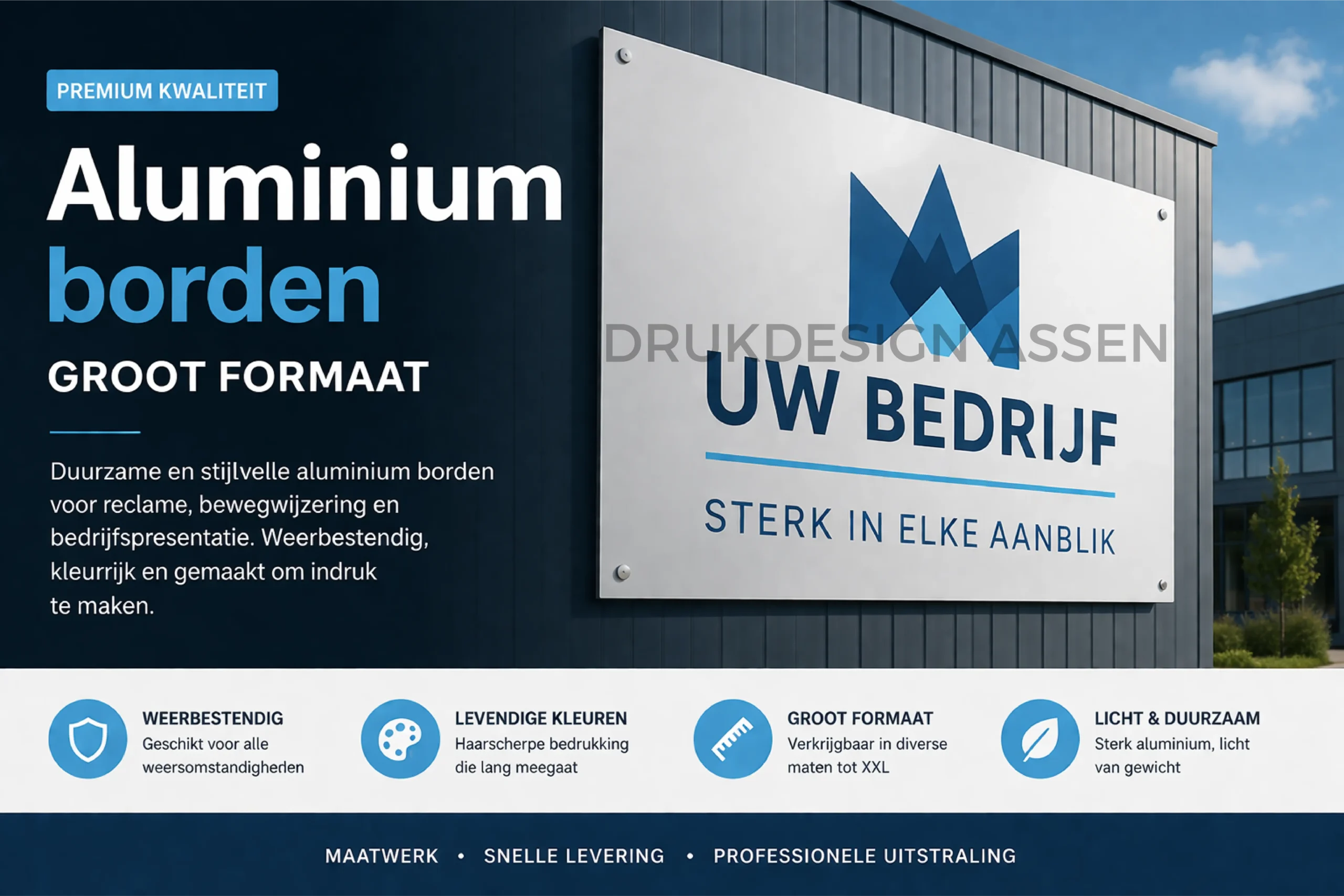 Hierdoor zijn grote aluminium borden ideaal voor bedrijven die langdurig zichtbaar willen zijn.